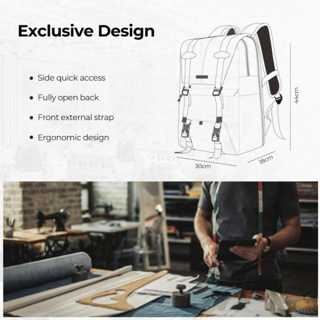 - Large capacity: 30*17*44cm, approx. 20L. The upper compartment is used to store various personal items such as clothes, wallet, cell phone or flash; There is also a laptop compartment for laptops up to 15.6 inches. The bottom compartment can hold 1 camera + 4 lenses and other accessories such as filters, batteries or memory cards, or for DJI drone.