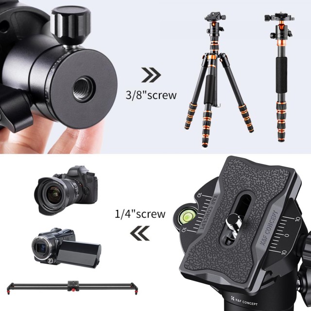 K&F Concept Camera Tripod Ball Head with 1/4 Inch Quick Release Plate and Spirit Level, 8 kg Load Capacity, for Tripod, Monopod, Camera Slider, SLR Camera