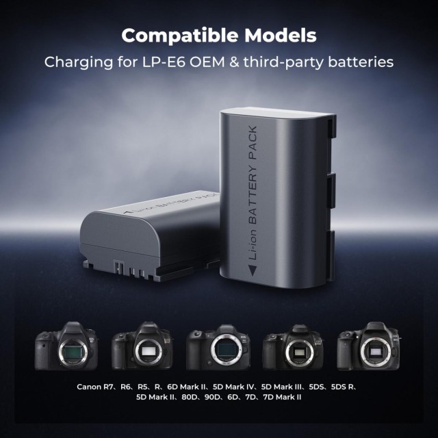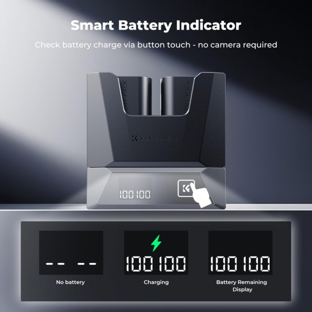 K&F Concept 2-Pack 2600mAh LP-E6NH Battery and 18W Charger. Stay powered for longer shoots with the K&F Concept KF28.0088 Battery & Charger Set, designed for Canon EOS cameras. This kit includes two high-capacity 2600mAh LP-E6NH batteries and a PD-enabled 18W USB-C charger, delivering fast, reliable charging and extended runtime for professional creators.