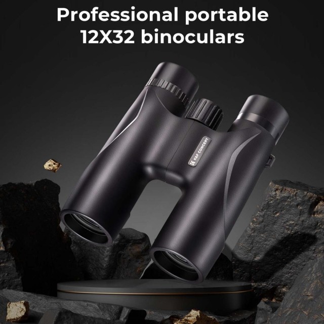 Larger field of view - 12X32 HD magnification binoculars, 12x closer observation and magnification, field of view of 90/1000m. 12+32mm enlarged eyepiece objective, providing more adequate complementary light and a larger field of view.