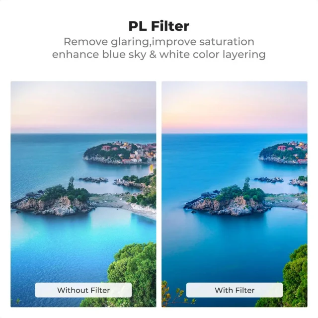 - * 【Reduce Reflection & Enhanced Contrast】The polarizing filter effectively reduces glare and reflection from water, glass, foliage, and other nonmetallic surfaces. Adjust the shot angle to get clear images with more details and increased saturation.