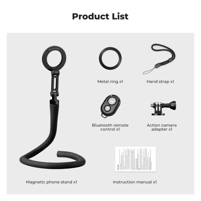 Flexible Magnetic Mobile Phone Holder, with Magnetic Guide, Bluetooth Remote Control, Mobile Phone Lanyard, Gopro Adapter. Magsafe magnetic adsorption design, built-in magnetic adsorption ring, with 16 strong neodymium magnets (N52).
