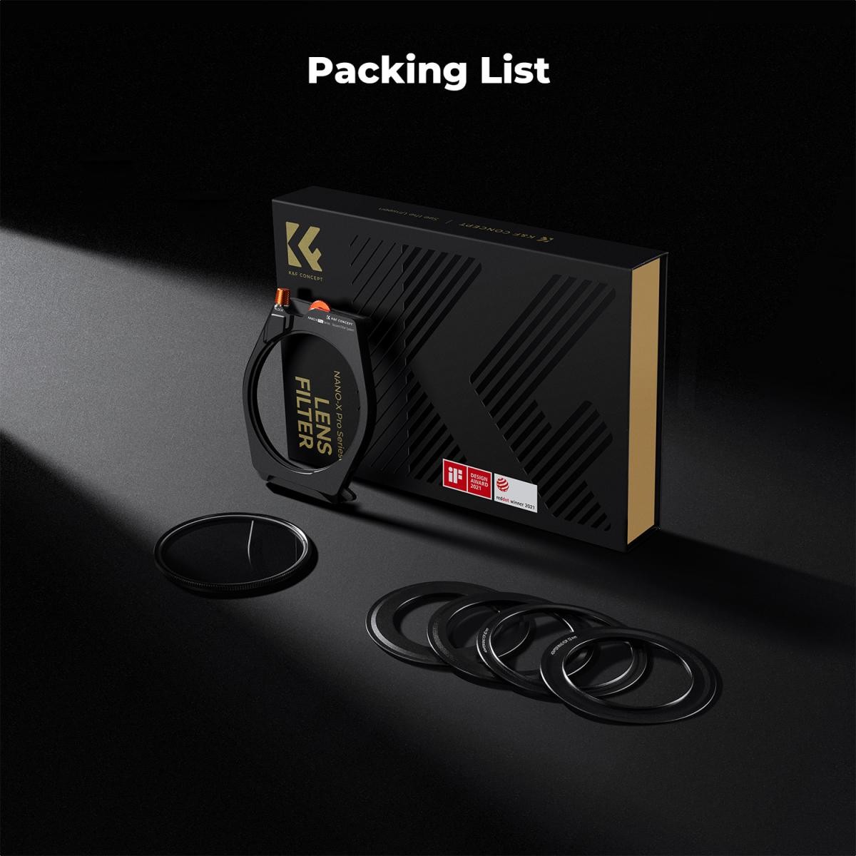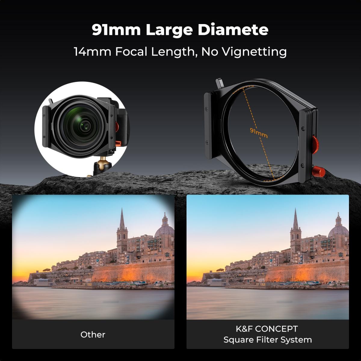 The K&F Concept KF High-End Square Bracket System from the Nano X Pro Series is a premium filter holder solution featuring an ultra-slim design with a built-in 95mm CPL. Designed to eliminate vignetting even on ultra-wide lenses, it offers award-winning construction, 36-layer nano-coated optics, and compatibility with multiple lens sizes through included adapter rings.