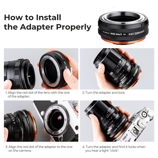 Unlock the potential of your M42 series lenses on M4/3 series bodies with our Adapter Ring. Boasting full manual control and a stable, slip-resistant design for enhanced safety, this ring is a must-have for any photographer. The red dot logo ensures precise alignment, facilitating effortless installation and disassembly. The tight integration of the connection ring and bayonet guarantees a secure fit with no looseness. Crafted from high-precision aluminum-magnesium alloy, this durable ring allows for comfortable and smooth lens macro functions, including the ability to focus at infinity. Elevate your photography experience with this exceptional adapter.