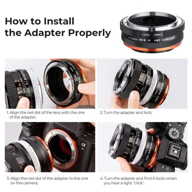 Effortlessly adapt your Canon FD/FL series lenses to Sony E series bodies with our precision-engineered Adapter Ring. The fully manual control ensures a stable and secure grip, enhancing safety during use. Featuring a red dot logo for precise alignment, the adapter facilitates easy installation and disassembly. The tight integration of the connection ring and bayonet eliminates any risk of looseness. Crafted from a high-precision aluminum-magnesium alloy, the durable ring ensures a perfect transfer, allowing for comfortable and smooth lens macro functions with the added benefit of infinity focus. Elevate your photography with this reliable and versatile adapter.