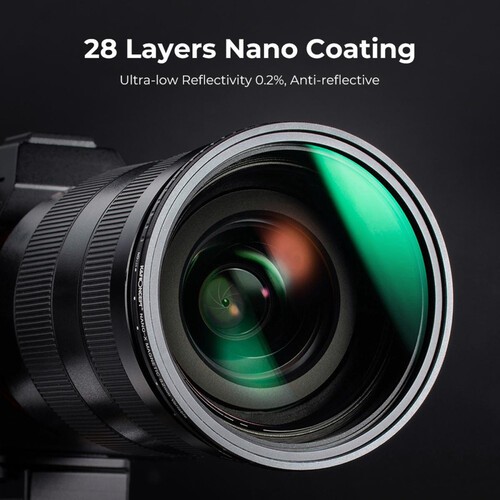For durability and performance, both sides of the optical glass feature 28 layers of nano-coating. This provides excellent resistance against water, scratches, oil, and glare, while also protecting your lens and maintaining high image clarity.