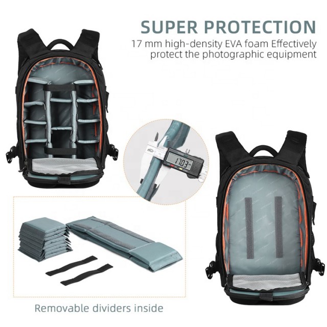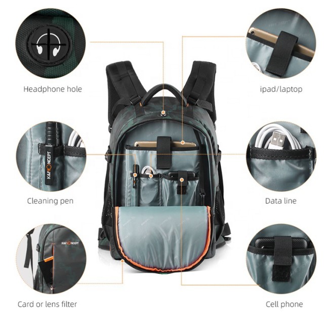 "●This K&F backpack with large main compartment holds a DSLR with lens attached while the modular dividers system will separate, organise and protect lenses, flashes tripod and other accessories to suit your needs.