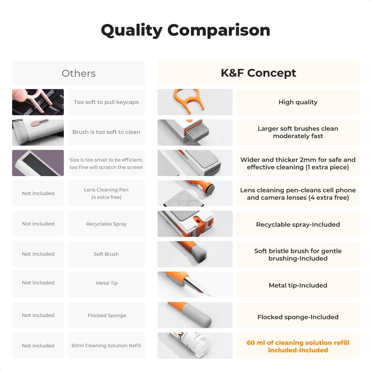 The K&F Concept Newly Upgraded 11-in-1 Keyboard & Electronics Cleaning Kit with 60ml cleaner is a complete, portable solution for deep and safe cleaning of keyboards, screens, earbuds, cameras, and everyday electronic devices.