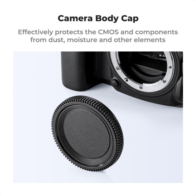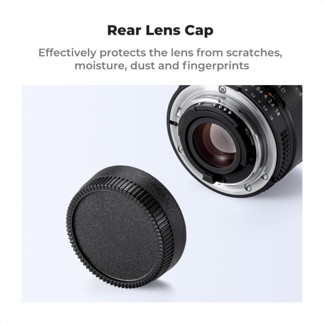 Protect your Nikon F-mount camera and lenses with the K&F CONCEPT 7-piece accessory kit, including body caps, rear lens caps, hot shoe covers, and a cleaning cloth. Made from durable ABS, these caps provide secure protection against dust, fingerprints, and water stains, while maintaining a sleek, professional look.
