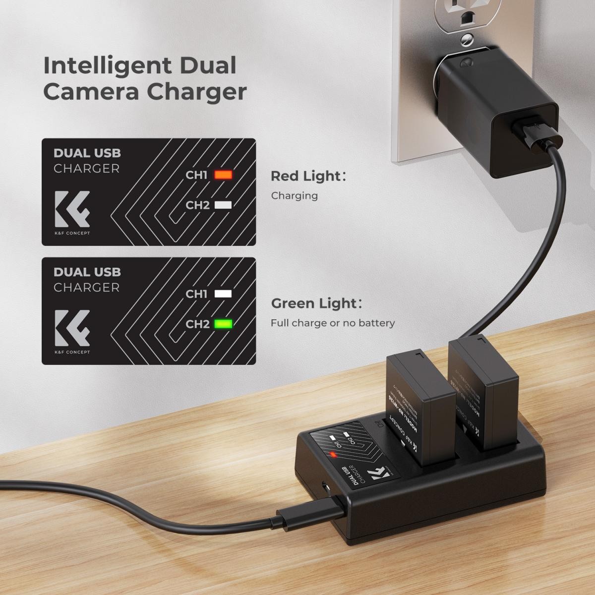 The K&F CONCEPT NP-W126 Dual Battery Kit includes two high-capacity 1300mAh replacement batteries and a dual-slot charger, delivering reliable, long-lasting power for compatible Fujifilm cameras. With Micro-USB and USB-C charging support plus built-in safety protections, this kit is ideal for photographers who need flexible and dependable power on the go.