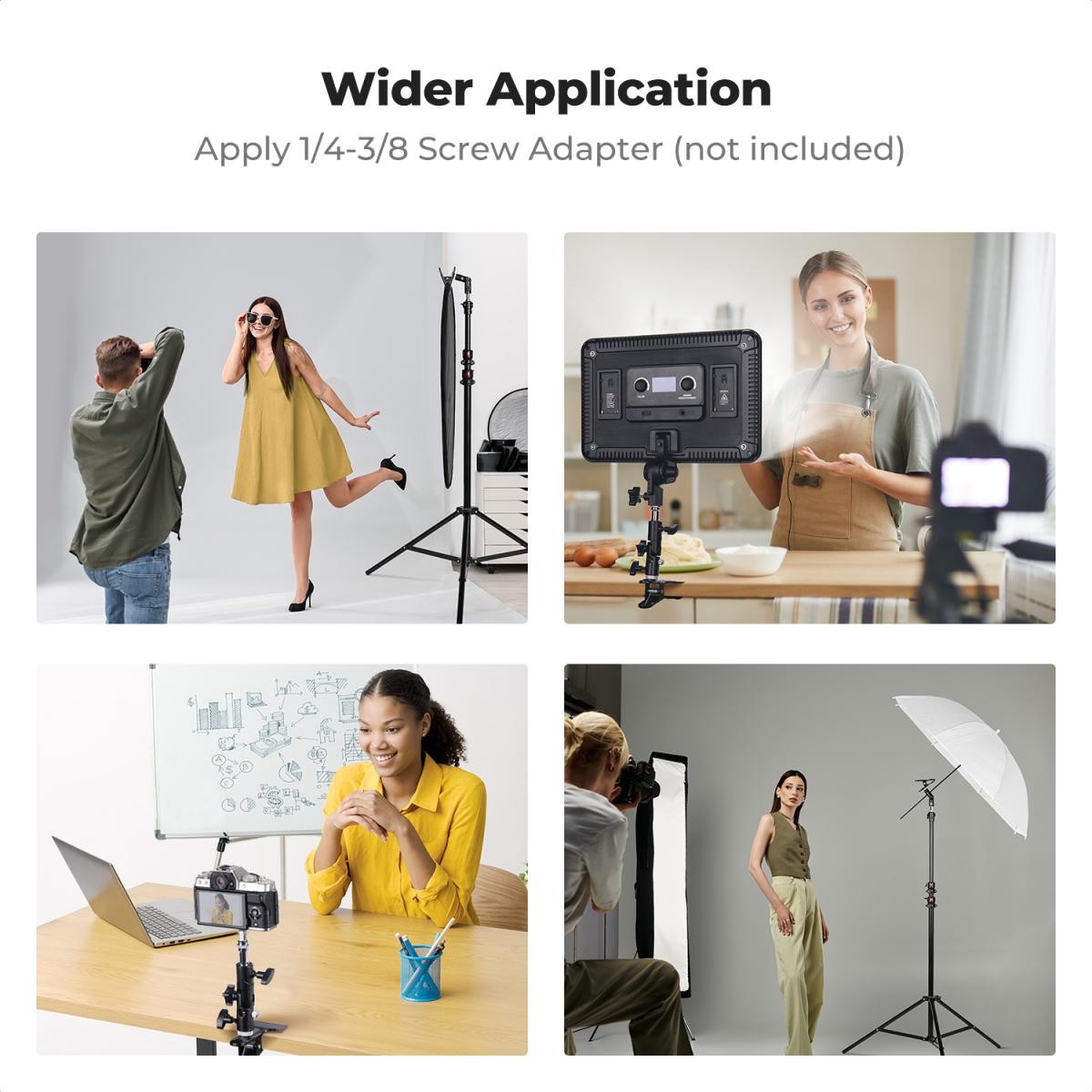 The K&F CONCEPT Photography Reflector Bracket is a heavy-duty metal clip designed to securely hold reflectors during studio or outdoor shoots without the need for an assistant. Its high-strength metal spring provides a powerful clamping force, while the anti-slip pad ensures stability and prevents accidental slipping. Designed for versatility, the bracket includes a central locking screw hole, allowing photographers to mount and secure a soft light umbrella with ease. The universal 5/8" base, paired with an included 1/4" to 3/8" screw adapter, ensures compatibility with any standard light stand. Easy to set up and built for reliable performance, this bracket is an essential tool for photographers who need efficient and stable reflector or umbrella support.