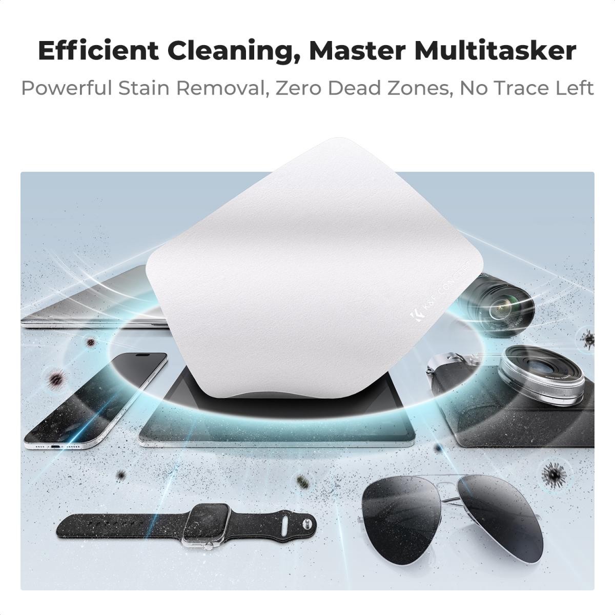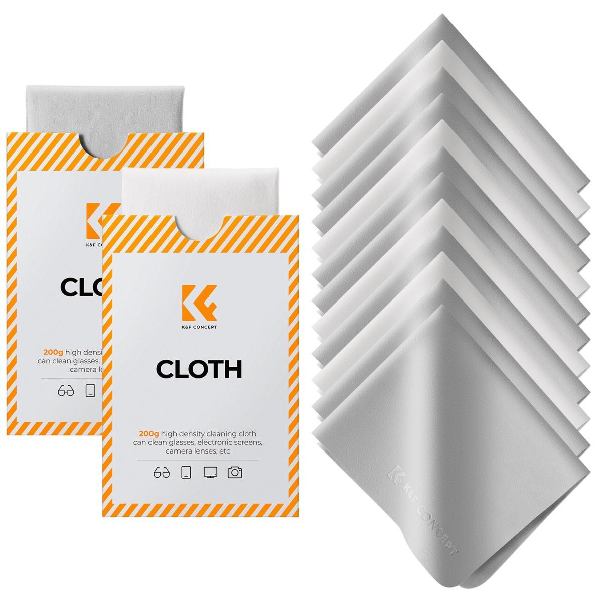 The K&F Concept 12-Pack Premium Microfiber Cleaning Cloths (6 x 7" / 15 x 18 cm) feature 200g high-density, lint-free fabric with straight-edge cuts for full-surface cleaning. It is washable, reusable, and ideal for lenses, screens, glasses, cameras, tablets, and optics—delivering streak-free, safe results on the go.