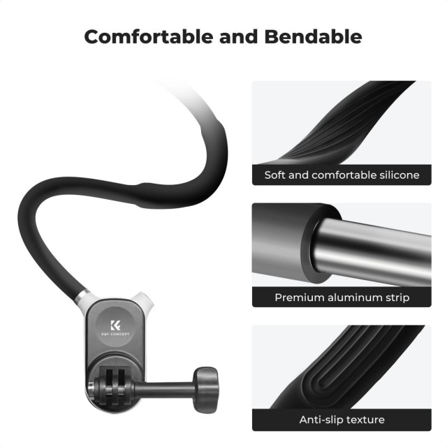 - * 【24" bendable and adjustable Material】: comfortable bendable silicone aluminium Moderate softness and hardness, 60cm (24 inch), the vlog holder is flexibly mouldable to fit the neck size and can be easily stowed away.