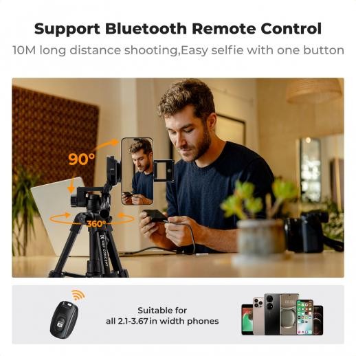 Equipped with a 1/4" screw mount, it supports micro-single cameras, small DSLRs, compact cameras, fill lights, conference cameras, and more. The included phone and tablet clips expand its usability, making it a perfect companion for vlogging, mobile photography, or streaming setups.