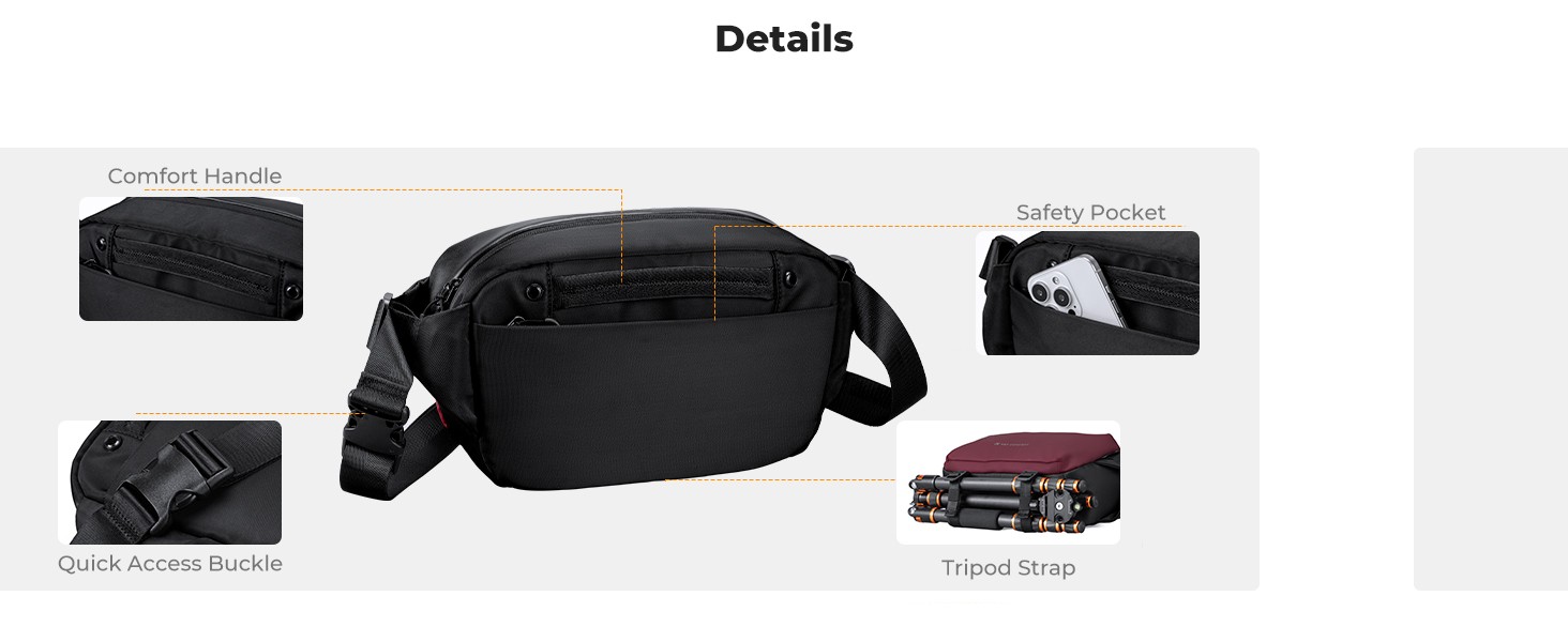 Multiple Carrying Modes: Easily switch between shoulder, crossbody, waist, chest, or handbag configurations for ultimate versatility during daily commutes, travel, or outdoor shoots.