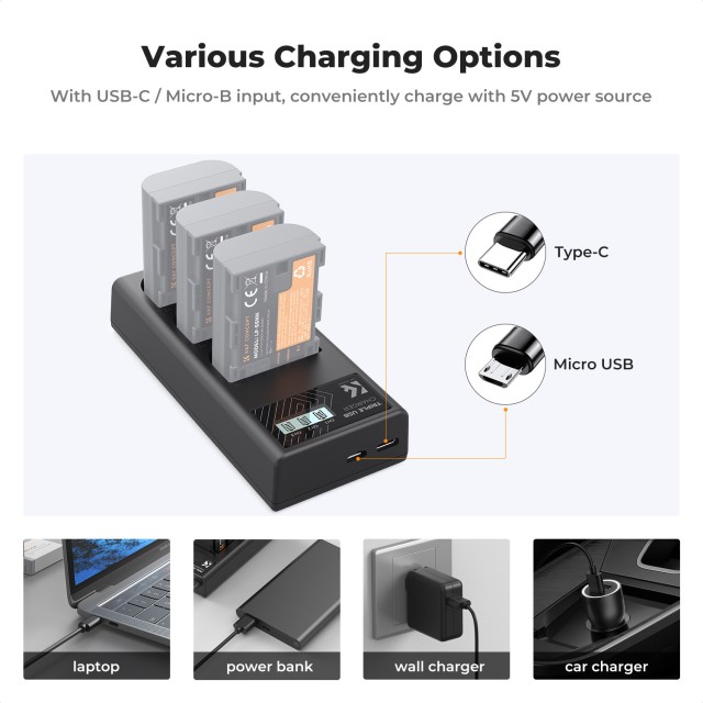 Charge your Sony NP-FZ100 batteries efficiently with the K&F Concept 3-Pack Camera Charger. Featuring a triple-slot design, intelligent LCD display, and versatile USB and Type-C charging options, it ensures you’re always powered up for your next shoot.