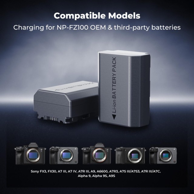 Sony NP-FZ100 18W Modular Fast Charger and Battery Kit, 2600mAh Large Capacity Battery for Sony A7iii, A7R V, IV, Alpha A7C, A6700, ILCE-1M2, A7R3, ZV-E1, FX3, FX30.