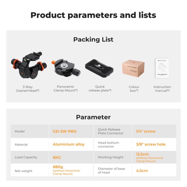 Achieve flawless framing with the KF31.127 3-way geared tripod head. Designed for macro, astrophotography, and commercial shoots, it features micrometer adjustment knobs, 4 bubble levels, and CNC-machined aluminum for ultra-smooth, stable control. Supports up to 6kg and offers 360° panoramic rotation for dynamic compositions. Ideal for photographers who demand…