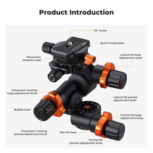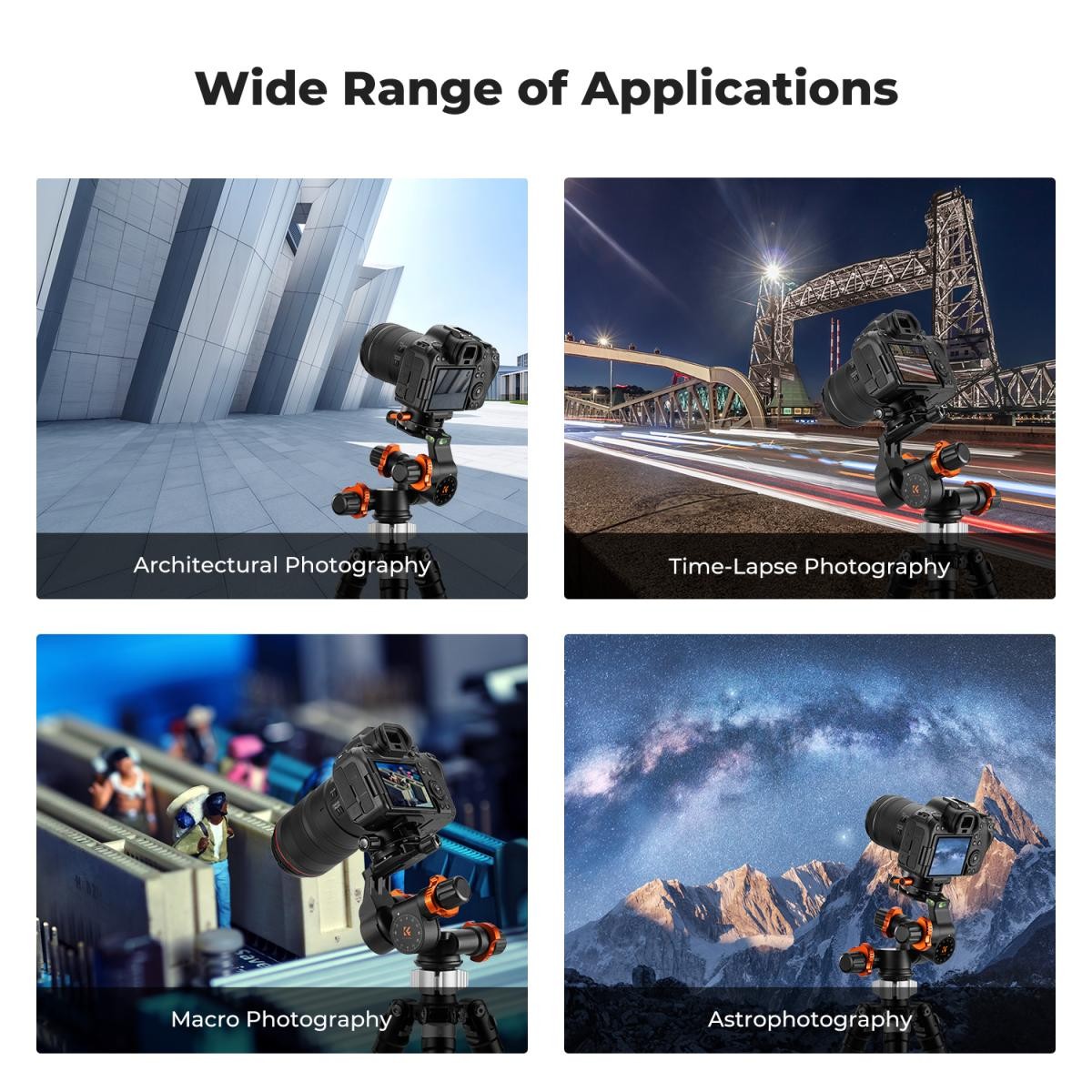 Achieve flawless framing with the KF31.127 3-way geared tripod head. Designed for macro, astrophotography, and commercial shoots, it features micrometer adjustment knobs, 4 bubble levels, and CNC-machined aluminum for ultra-smooth, stable control. Supports up to 6kg and offers 360° panoramic rotation for dynamic compositions. Ideal for photographers who demand accuracy and speed.