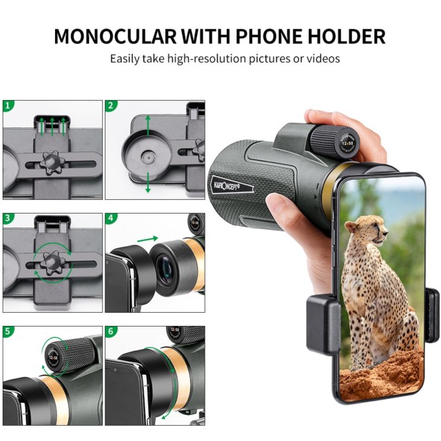 YH1250 12*50 Compact Monocular IP65 Waterproof High Power Easy Focus Monocular for Bird Watching Outdoor Hunting Travel Sightseeing