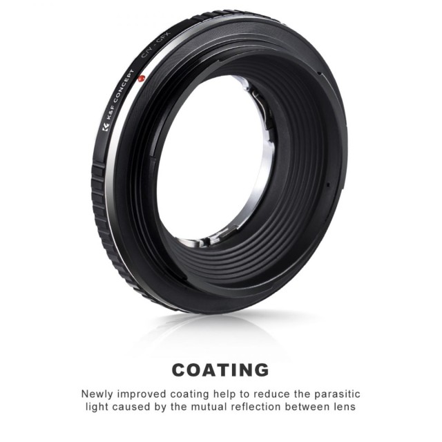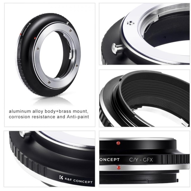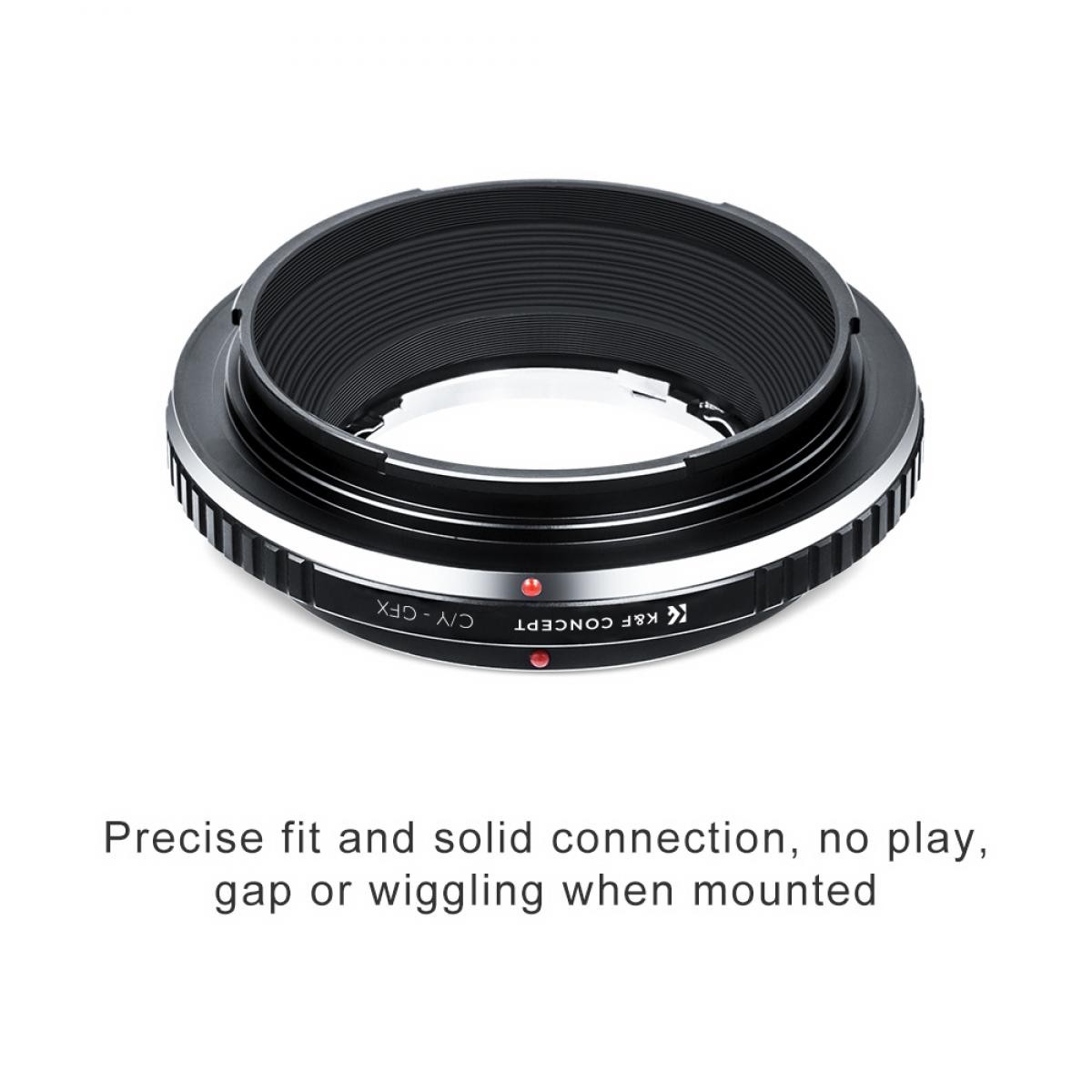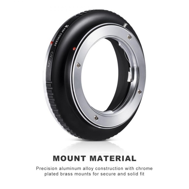 The K&F Contax/Yashica to Fuji GFX Lens Adapter allows C/Y mount lenses to be used on Fujifilm G-Mount GFX medium-format cameras. Featuring precision all-metal construction with chrome-plated brass mounts, it supports stable manual operation and infinity focus.