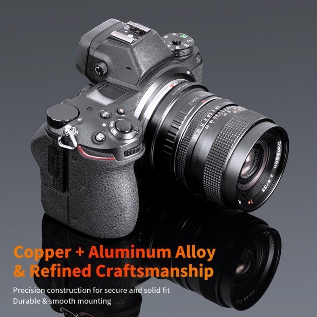 The K&F Concept Contax Yashica to Nikon Z Lens Adapter enables Contax/Yashica (C/Y) mount lenses to be used on Nikon Z-mount mirrorless cameras such as the Z6 and Z7. Built with a smooth copper interface for effortless mounting, it supports full manual operation with infinity focus and includes clear alignment markings for easy instal…
