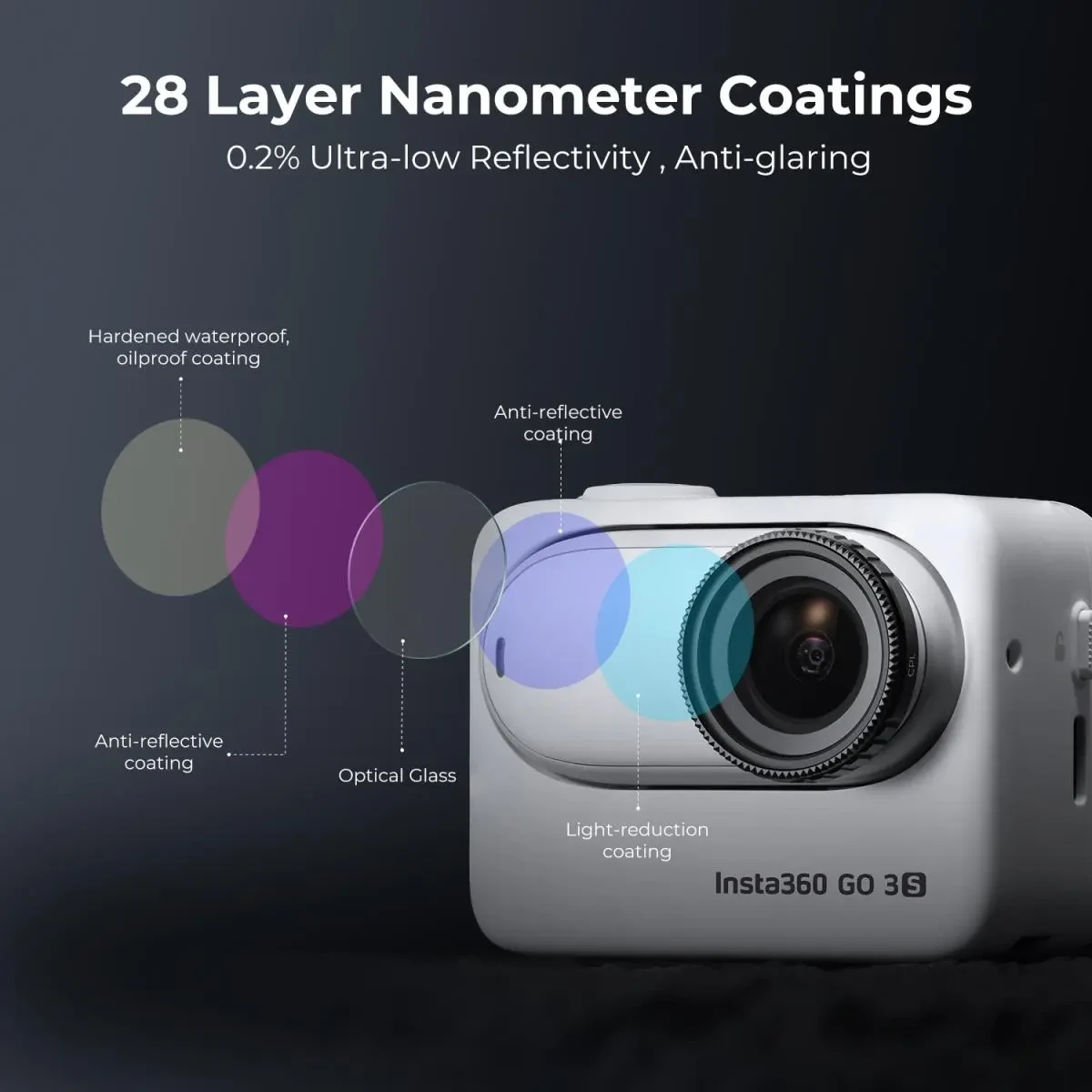 K&F Concept Go 3S Circular Polarizers CPL Filter, CPL Filter Compatible with Insta360 GO 3S Action Camera, Optical Glass with 28 Multi-Coated Filter, (NOT for Insta360 GO 3). CPL filter can effectively remove the glaring came from non-metallic surfaces, such as water and glass, and enhance the color and contrast, especially in blue sky and white cloudy photography.