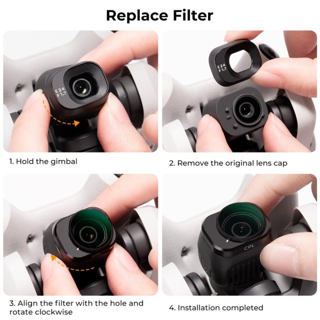 DJI Mini 4 Pro CPL+ND 6pcs filter kit from K&F Concept is specially designed to improve your video / image shooting, by providing polarizing and light reduction effect for your aerial shooting.