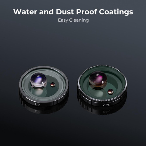 The K&F CPL+UV+ND8+ND16+ND32+ND64 Filters Kit is a high-quality filter set designed for the Insta360 GO 3S. It includes 6 filters with 28 multi-layer coatings for improved light control, color accuracy, and clarity. Features include UV, CPL, and ND filters in various strengths (3-6 stops) made from AGC glass and aviation aluminum frame for durability.
