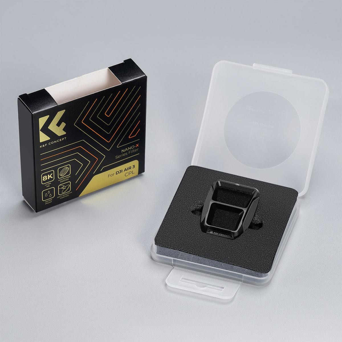 The K&F Concept DJI Air 3 CPL Filter is a high-quality circular polarizer designed specifically for the DJI Air 3 dual-camera system, helping reduce reflections and enhance color contrast. Built with premium AGC optical glass and advanced nano-coatings, it delivers crisp, vibrant aerial footage while remaining fully gimbal-safe.