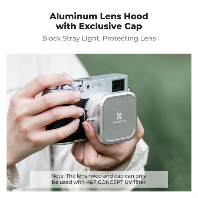 Compatible with Fujifilm camera X100/X100F/X100S/X100T/X100V/X100VI. The UV Filter is made of imported AGC optical glass, up to 99.6% light transmission rate with 28 layers double sides waterproof and scratch resistant coatings. It can reduces ultraviolet light, helps eliminate bluish cast in images. Protects lens from dust, dirt, and scratches.