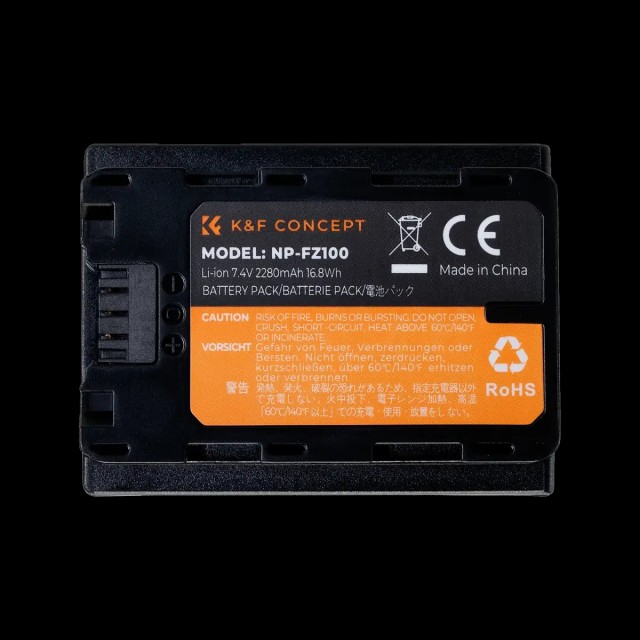 The K&F FZ100 Digital Camera Battery is engineered for photographers and videographers who need dependable, extended power for their Sony cameras. With a 2280mAh capacity (16.8Wh), it provides longer shooting times comparable to the original Sony battery, allowing you to capture more photos or videos during extended shoots. Made with lithium-ion chemistry, the battery is lightweight, compact, and free from memory effect, so it can be charged anytime without losing capacity. K&F batteries are built to the highest standards of safety and reliability, meeting CE and RoHS certifications, and come with a 1-year limited warranty for peace of mind. Ideal for professional or casual use, this battery ensures your Sony FZ-100 camera is always ready to perform. Proper care, such as initial full charging and avoiding extreme temperatures, will ensure optimal performance and longevity.