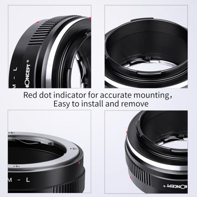 The K&F High Precision Lens Adapter Mount OM-L enables you to mount Olympus OM screw mount lenses to L-mount cameras like Leica, Panasonic, and Sigma models. This manual adapter does not support auto focus or aperture control, and requires a setting adjustment for first use.