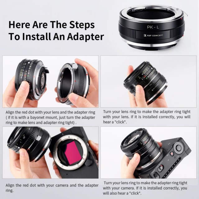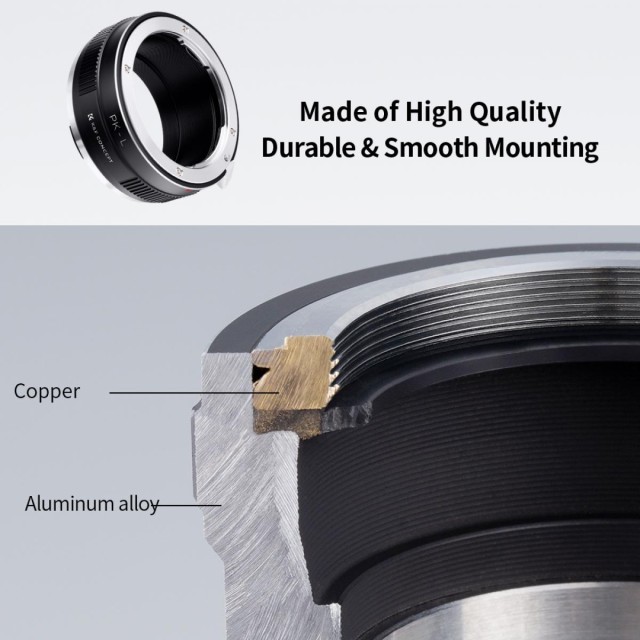 • Connect Pentax K lens to L mount mirrorless camera.