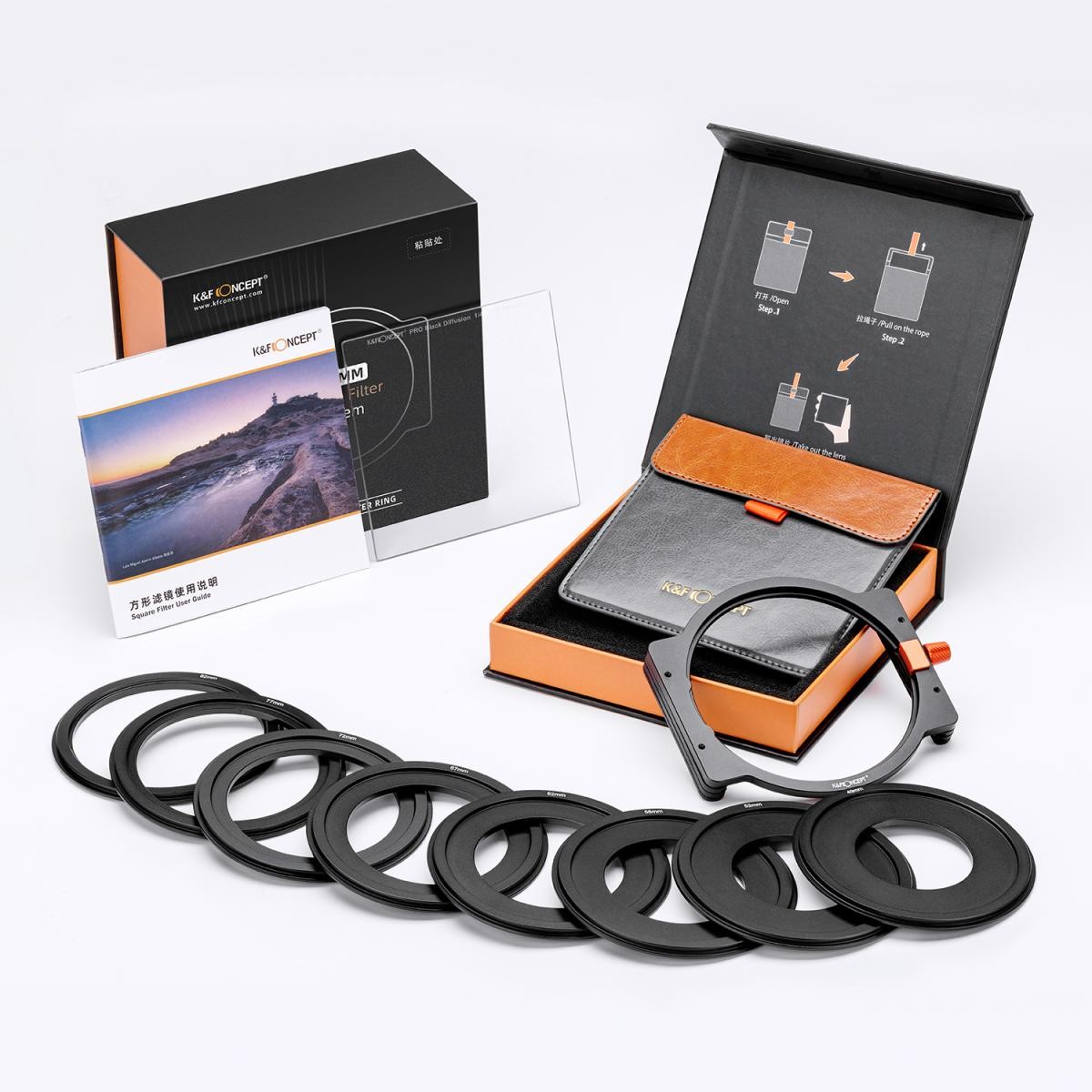 The K&F SNJ51T Square Black Mist 1/4 Filter Kit delivers a dreamy, cinematic look by softening highlights and reducing harsh contrast. Made with high-quality Japanese AGC optical glass and 28-layer coatings, this kit includes a versatile metal filter holder and adapter rings for multiple lens sizes.