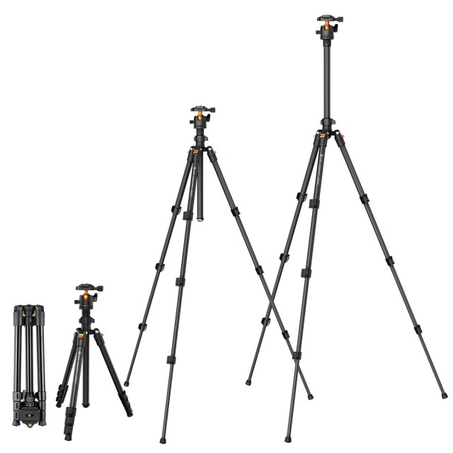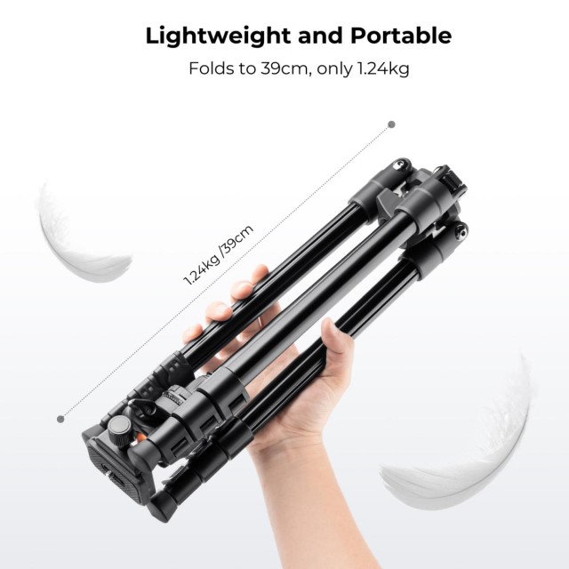 Compact & Portable Tripod - Perfect for Travel, Vlog & Work. Quality military magnesium-aluminum alloy, corrosion resistance; tripod with ball head weighs only 2.56 lbs/1.16kg, it can be 180°reflexed and folded to 390mm/15.35", easy to put in a backpack or suitcase when travel.