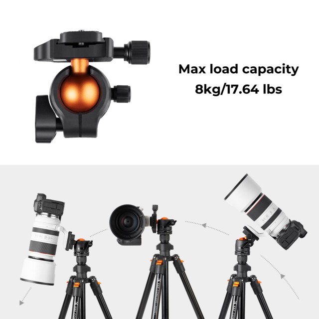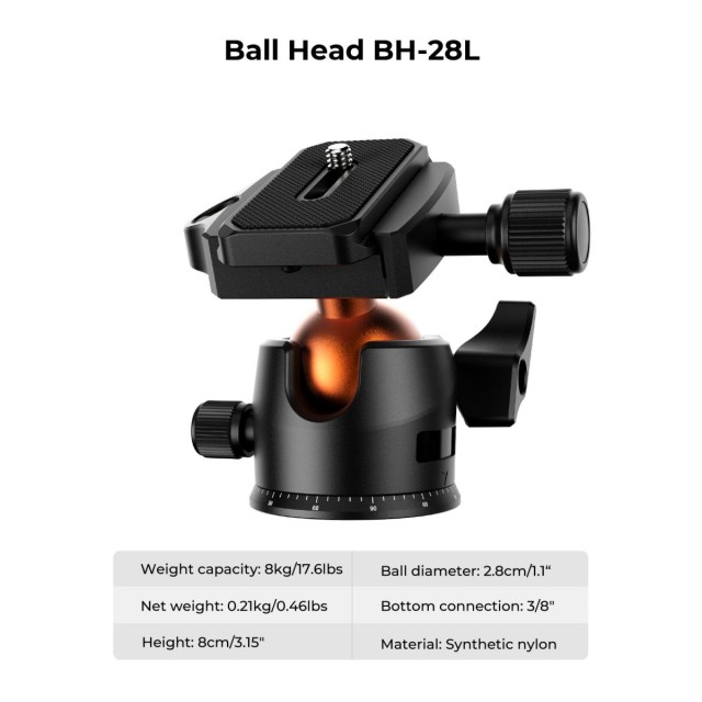 - * 【360° PANORAMA】The 28mm large KF-28 metal ball head provide 17.64lbs/8kg load capacity, it can be rotated 360 degrees, helping to expand DSLR camera activity range when panoramic shooting.