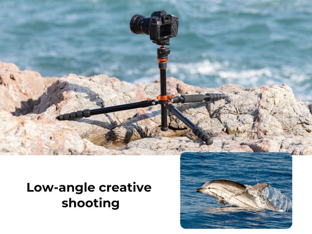 * 【Multi-Angle Shooting】Spring self-locking foot tube angle adjustment button, just press and release to quickly adjust the opening and closing angle of the three legs; can help you achieve lowest angle shooting, macro shooting, and other special photography through inverted central axis."