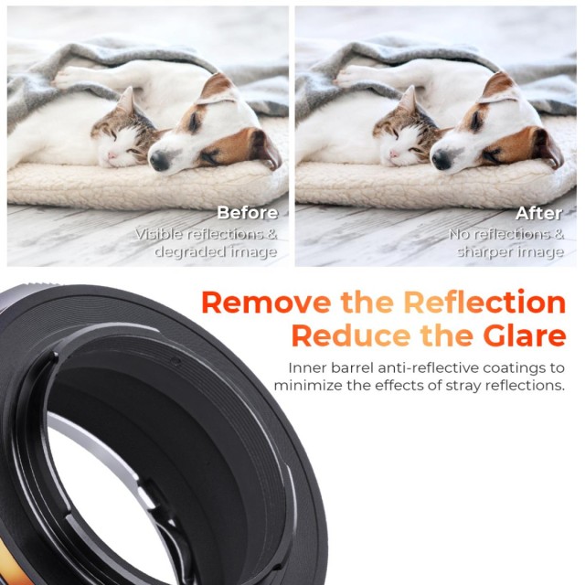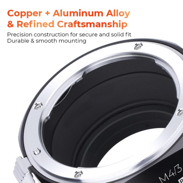 The K&F Concept NIK-M4/3 adapter for manual focusing is compatible with Nikon AI F lenses for cameras with a Micro Four Thirds M4/3 mount.