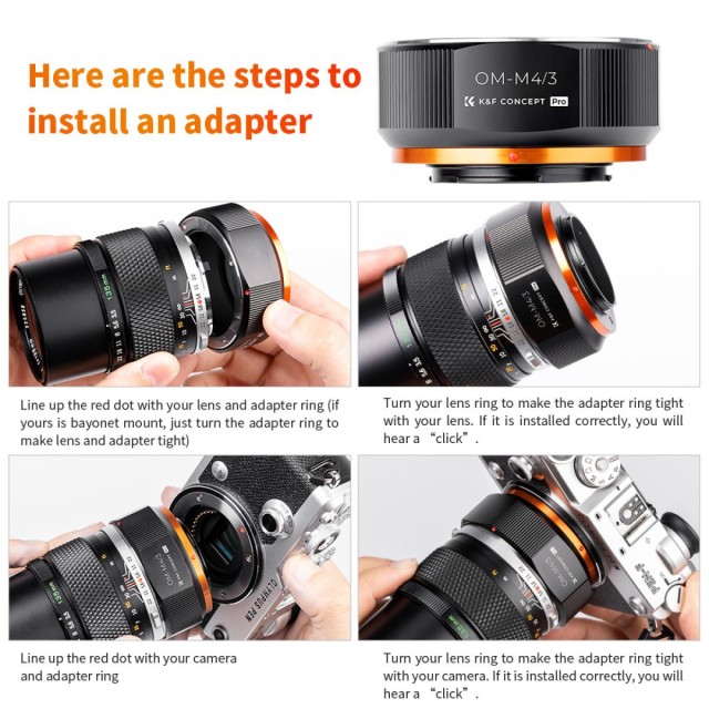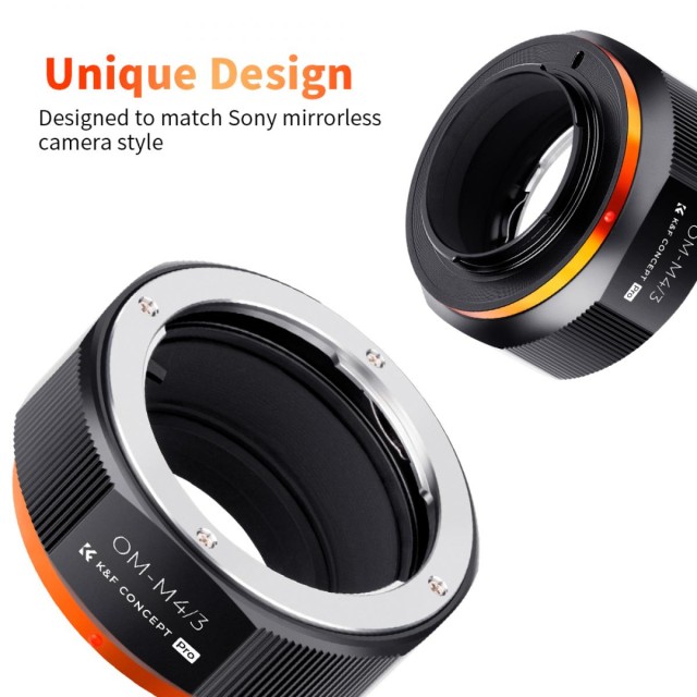 The K&F Concept OM-M4/3 adapter for manual focusing is compatible with Olympus OM lenses for cameras with Micro Four Thirds M4/3 Olympus Pen mounts.