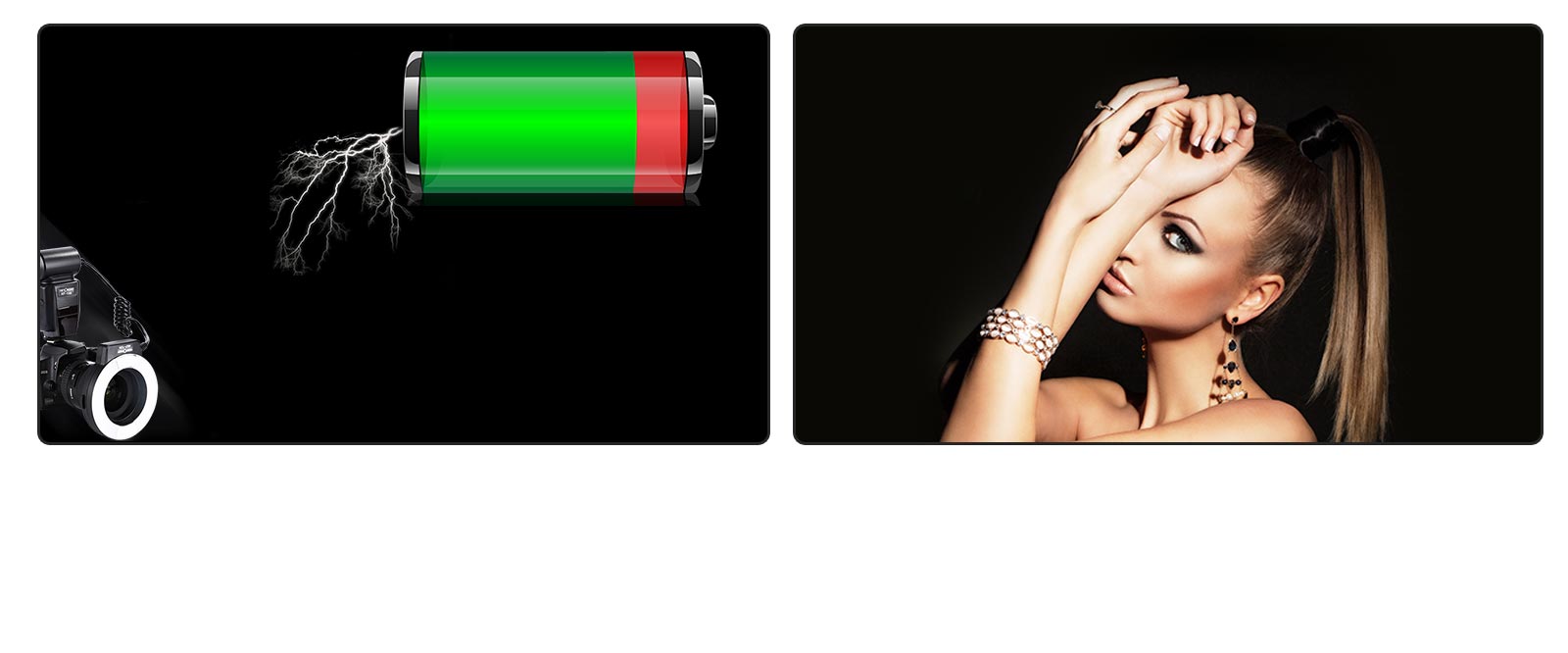 E-TTL control with flash correction, manual flash control and strobe/multi-flash control. A dual flash tube design with separate brightness control system allows you to light either both tubes at the same time or each one at the same time to achieve even illumination of your subject when taking highly sensitive photos.