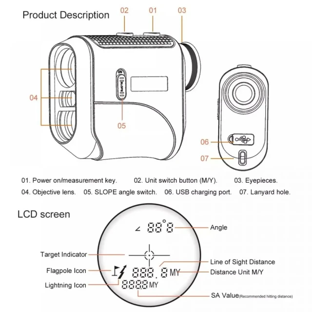 * Easy to operate: support one key measurement, press the measurement key to measure straight line distance, horizontal distance, height and angle at the same time. Also supports golf distance correction mode, providing golfers with more accurate data support.