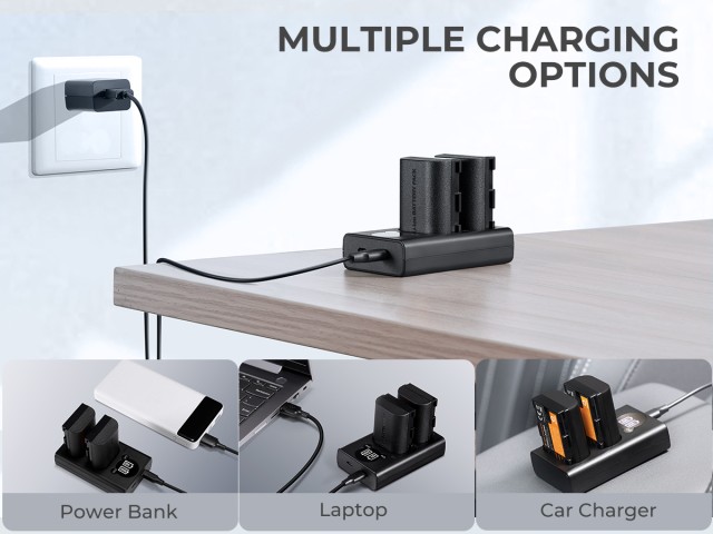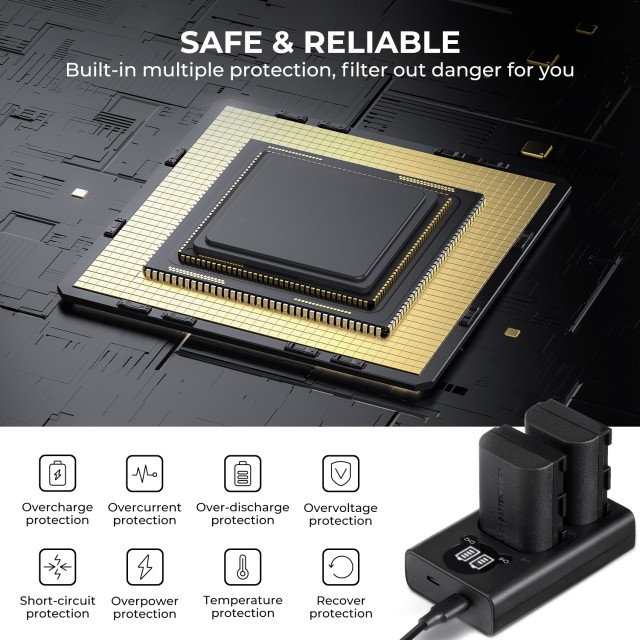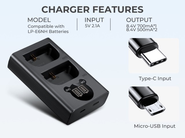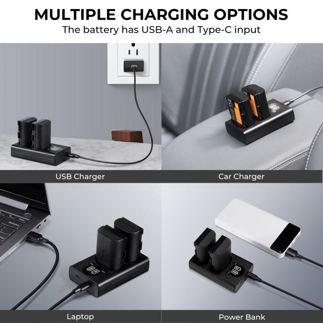 * 【Intelligent charging】 LCD dual charger accurately display the battery charging status, the charging process using an intelligent chip to better protect the battery; dual-slot charging port can quickly charge two batteries at the same time, greatly saving your time, is the best choice for travel.