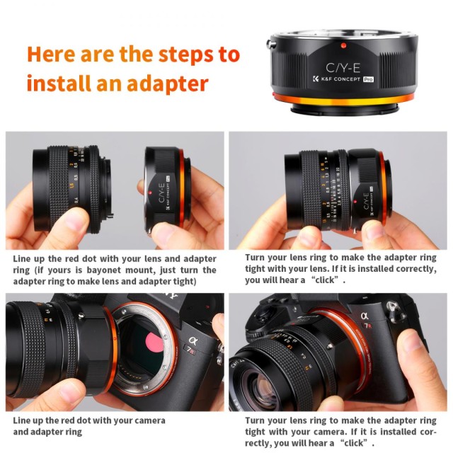 The K&F Concept C/Y-NEX manual focus adapter is compatible with Contax / Yashica (C/Y) lenses for cameras with NEX E-Mount.