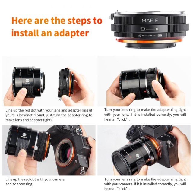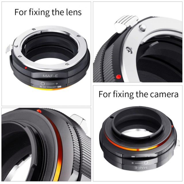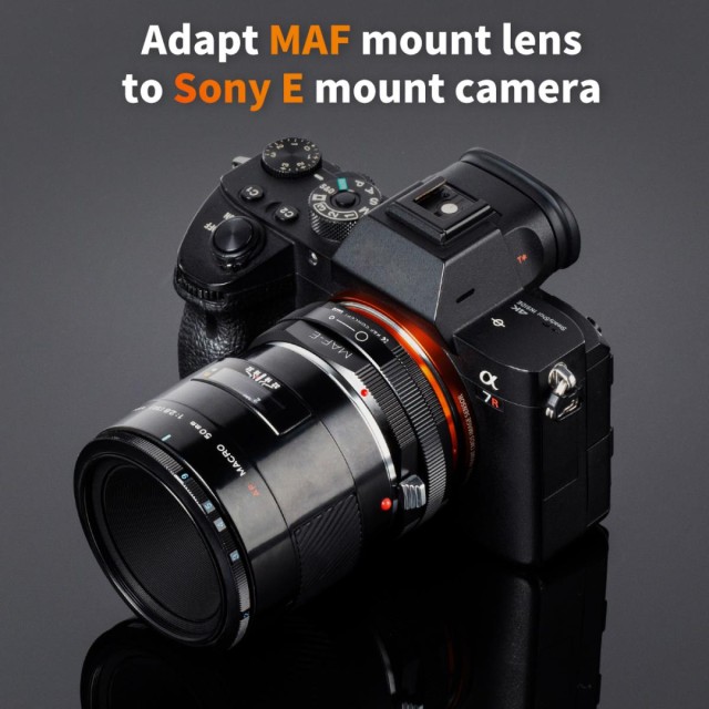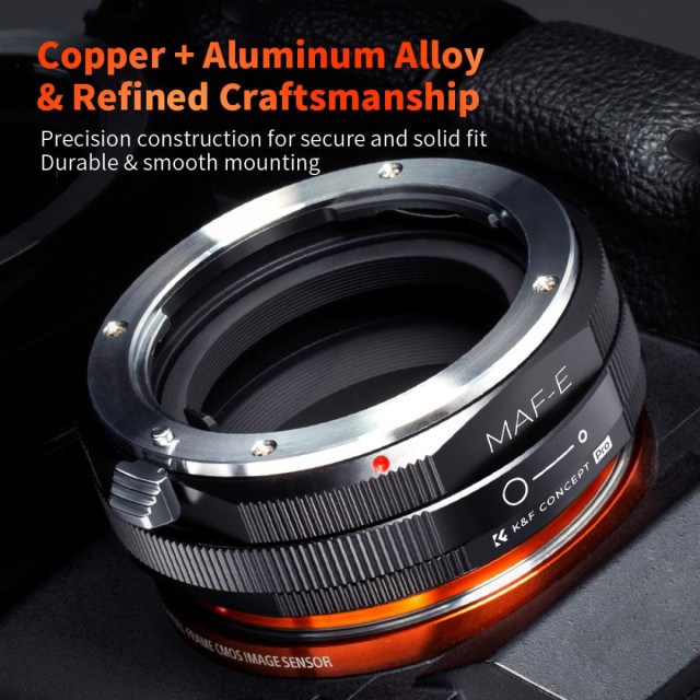 The K&F Concept MAF-NEX manual focus adapter is compatible with Sony Alpha Minolta AF A-Type lenses for cameras with NEX E-Mount.