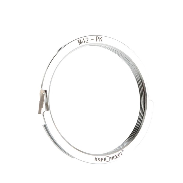 The K&F M42 Screw Lenses to Pentax K Camera Mount Adapter enables M42 lenses to be mounted onto Pentax K-mount DSLR cameras, offering a durable build and support for infinity focus.