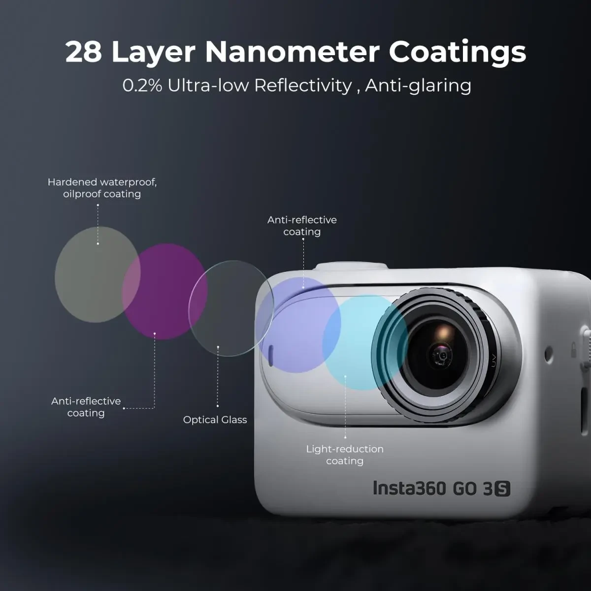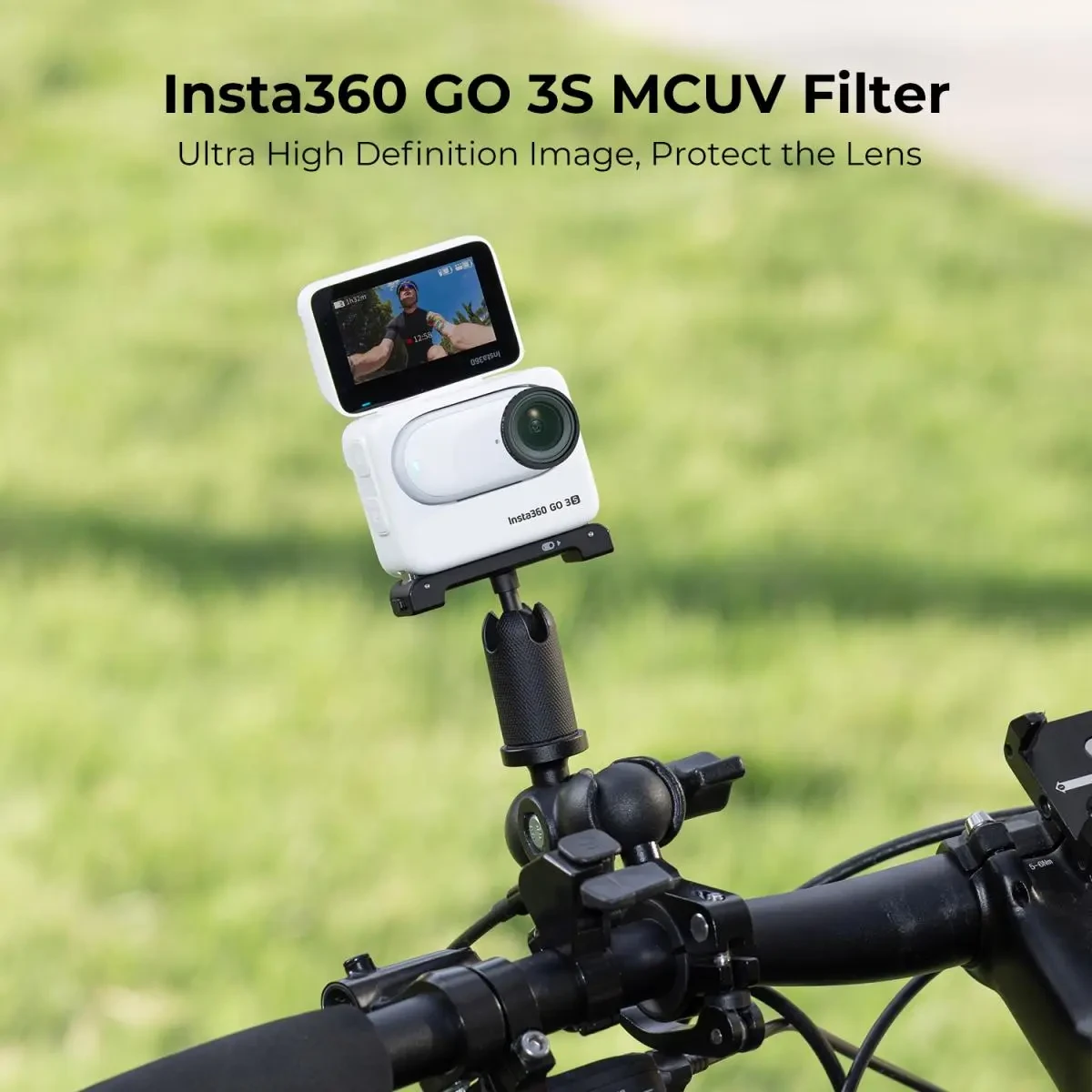 K&F MCUV Protection Filter 28 Multi-Coated UV Filter Compatible with Insta360 GO 3S Action Camera. Specifically designed for Insta360 GO 3S action cameras only. Includes 1x UV filter. UV filter has two functions, one is to protect the lens, and another is to prevent the UV ray from affecting the image quality.