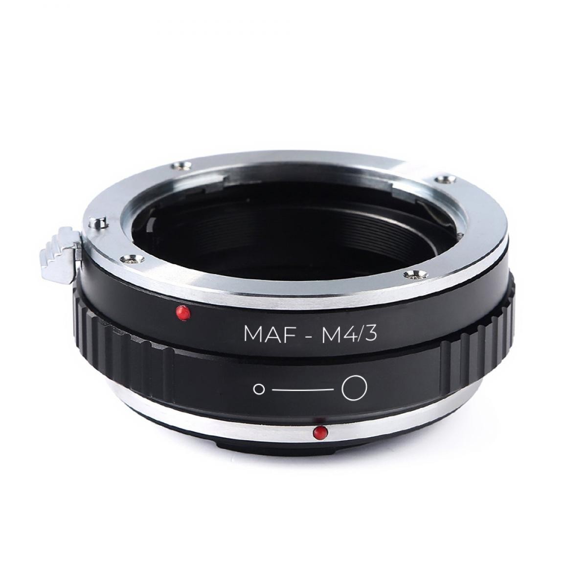 The K&F Minolta A / Sony A to Micro Four Thirds (MFT/M43) Lens Adapter allows Minolta AF and Sony Alpha A-mount DSLR lenses to be used on Micro Four Thirds mirrorless cameras. Made from anodized aluminum, it provides a durable all-metal construction with stable mounting, manual operation, and infinity focus support.