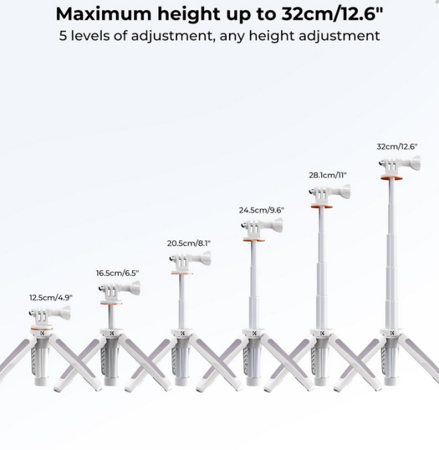The K&F MS03 Smartphone Tripod in orange-grey is a versatile and portable solution for your photography and videography needs. With a maximum height of 32cm and 5-section leg adjustment, you can easily set it to your desired height. This tripod head supports a load capacity of 2 kg, making it suitable for GoPro, DJI Osmo Action, and Insta 360 devices.…