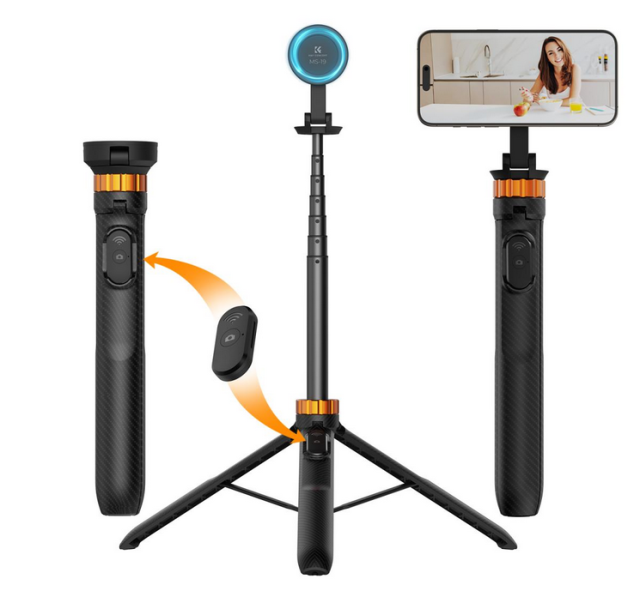 The K&F MS19 Phone Tripod offers exceptional height versatility with a maximum extension of 162cm and 7-section leg adjustment, allowing you to set the ideal height for any shot. Designed for convenience, it features a magnetic installation design, making the connection between the selfie stick tripod and your mobile phone quick and effortless. This tripod…